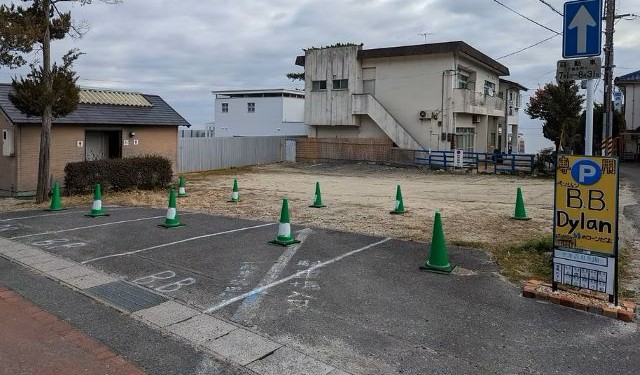 -駐車場について…無料の専用駐車場がございます。緑のコーンが目印です!
