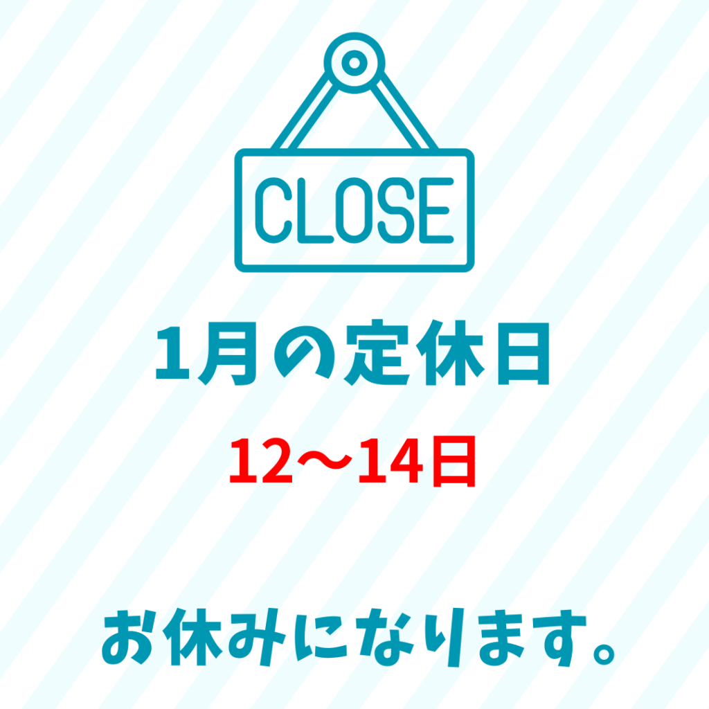 1月は12~14日までお休みとさせていただきます。